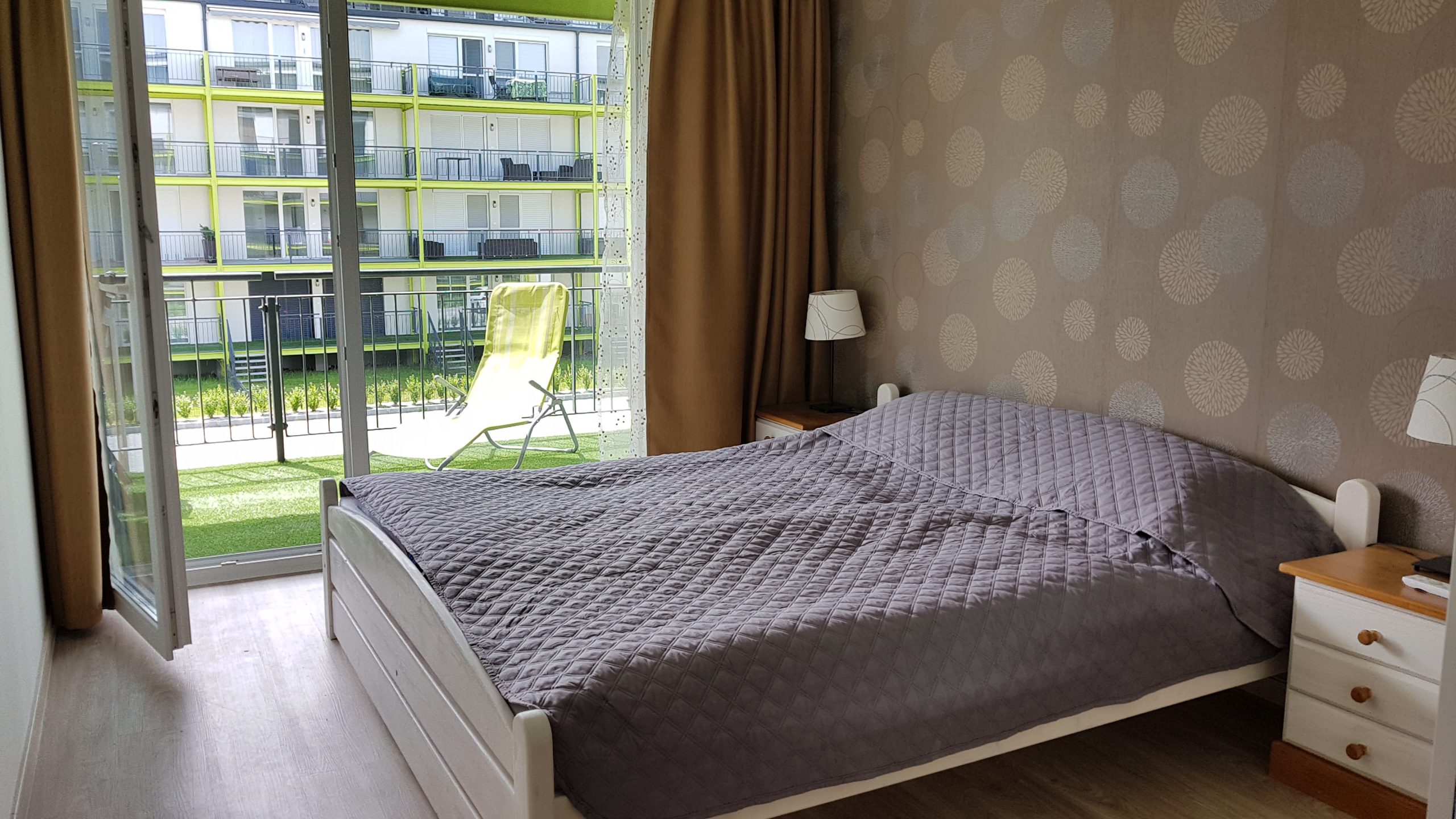 Bedroom: comfortable double bed for 2 people (180 x 200 cm), wardrobe, direct balkony connection with a view of Lake Balaton.