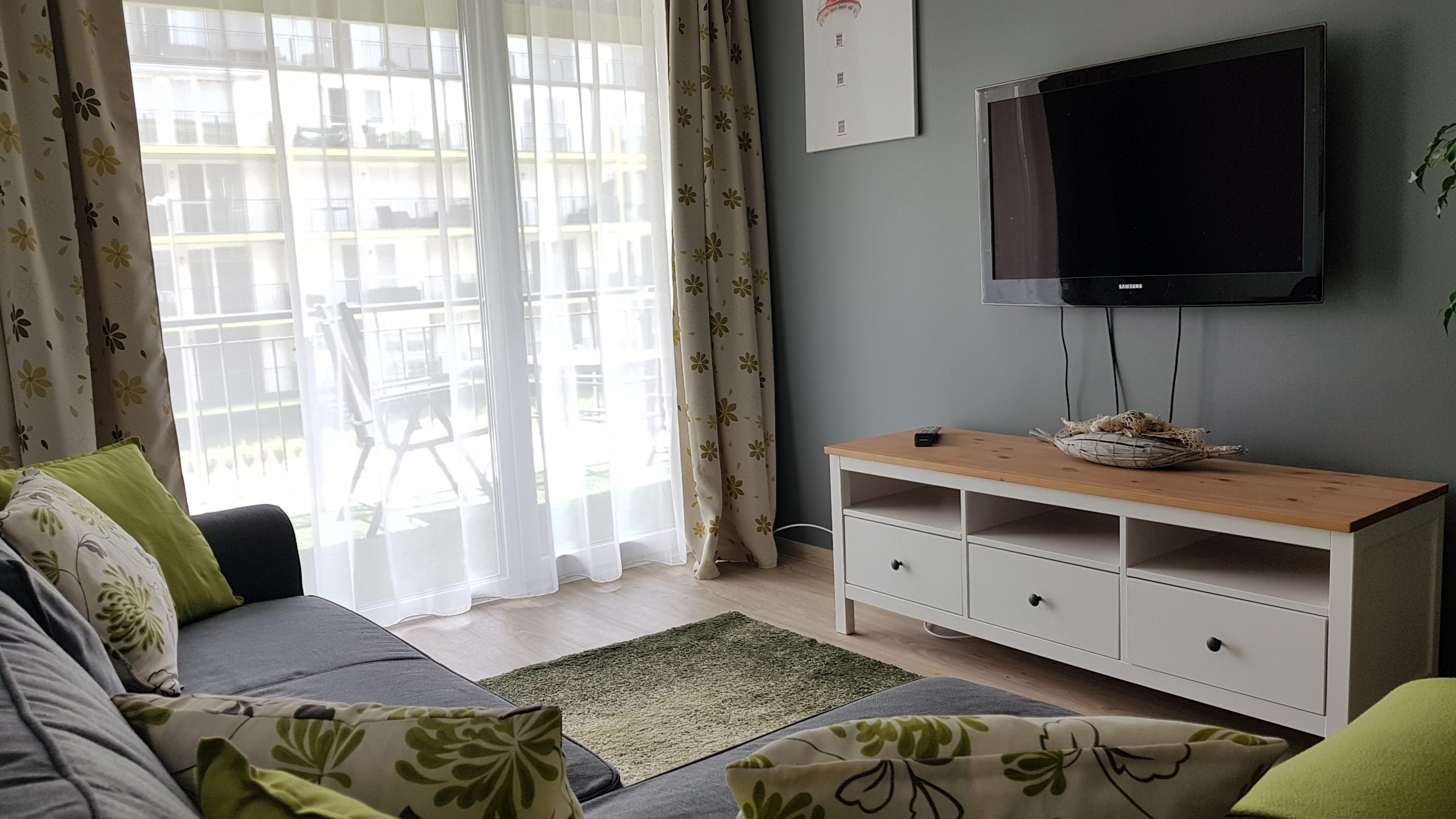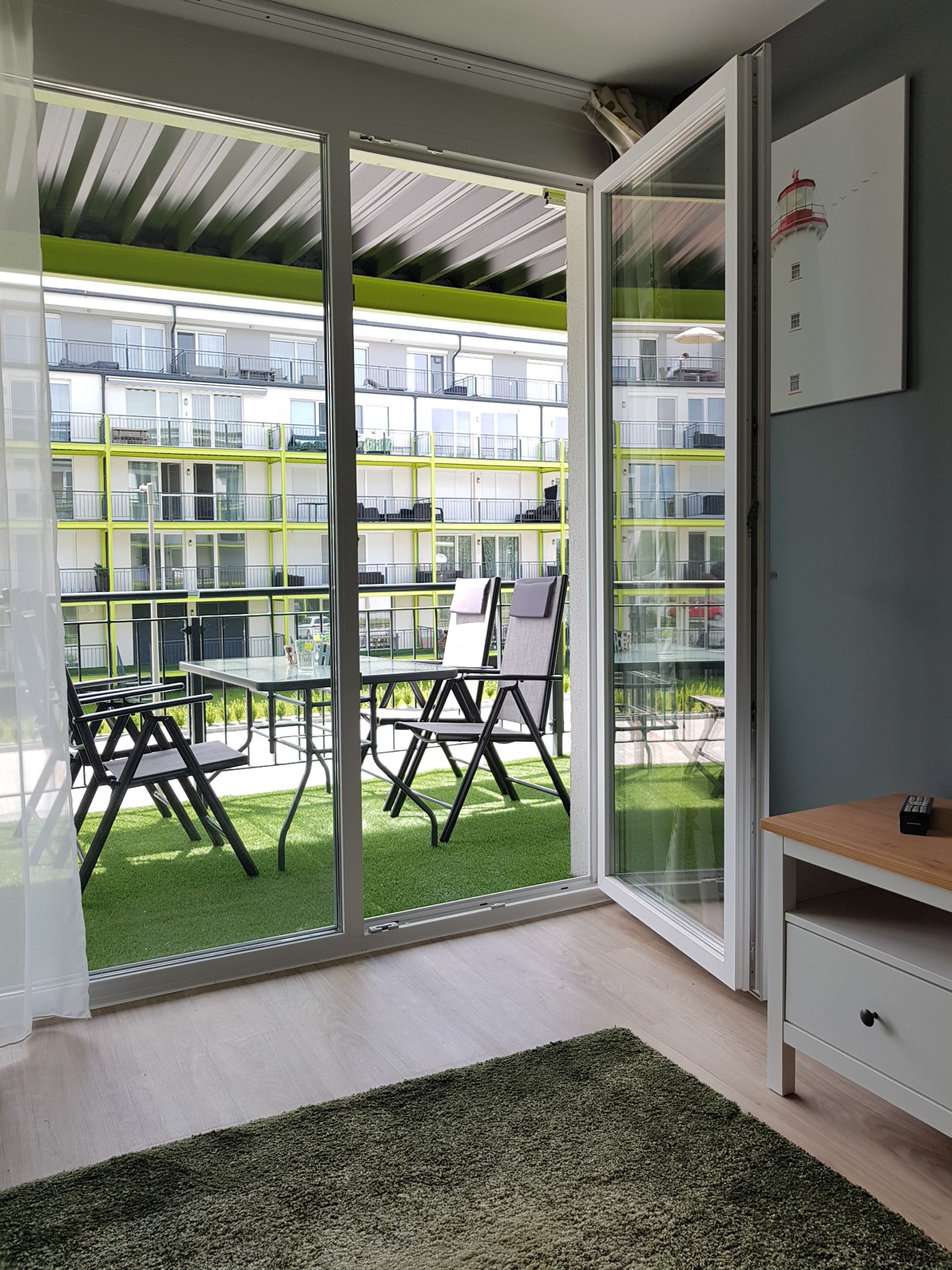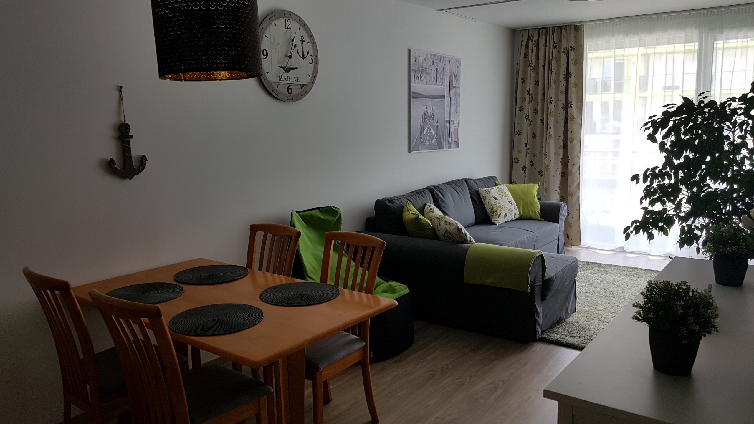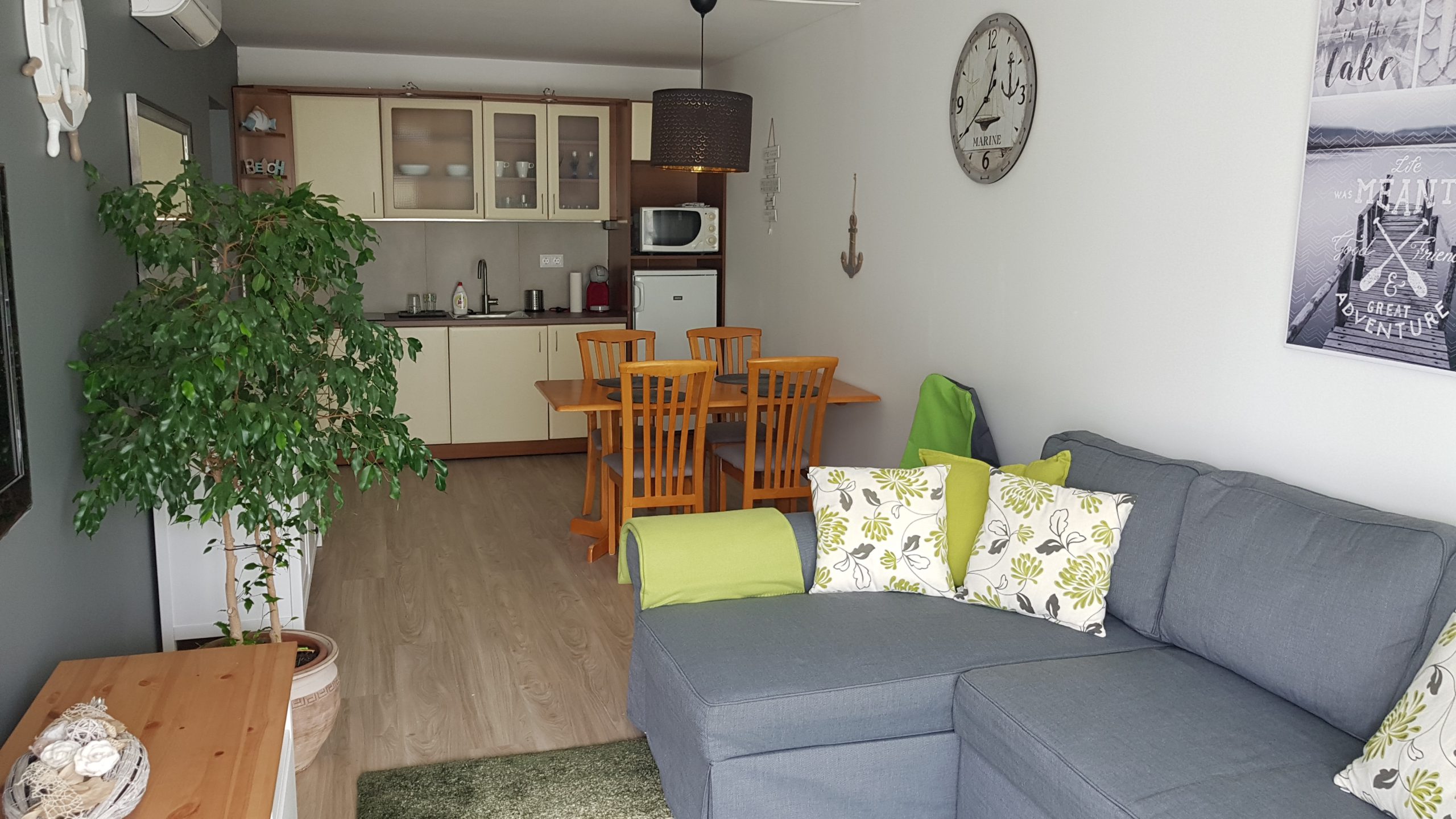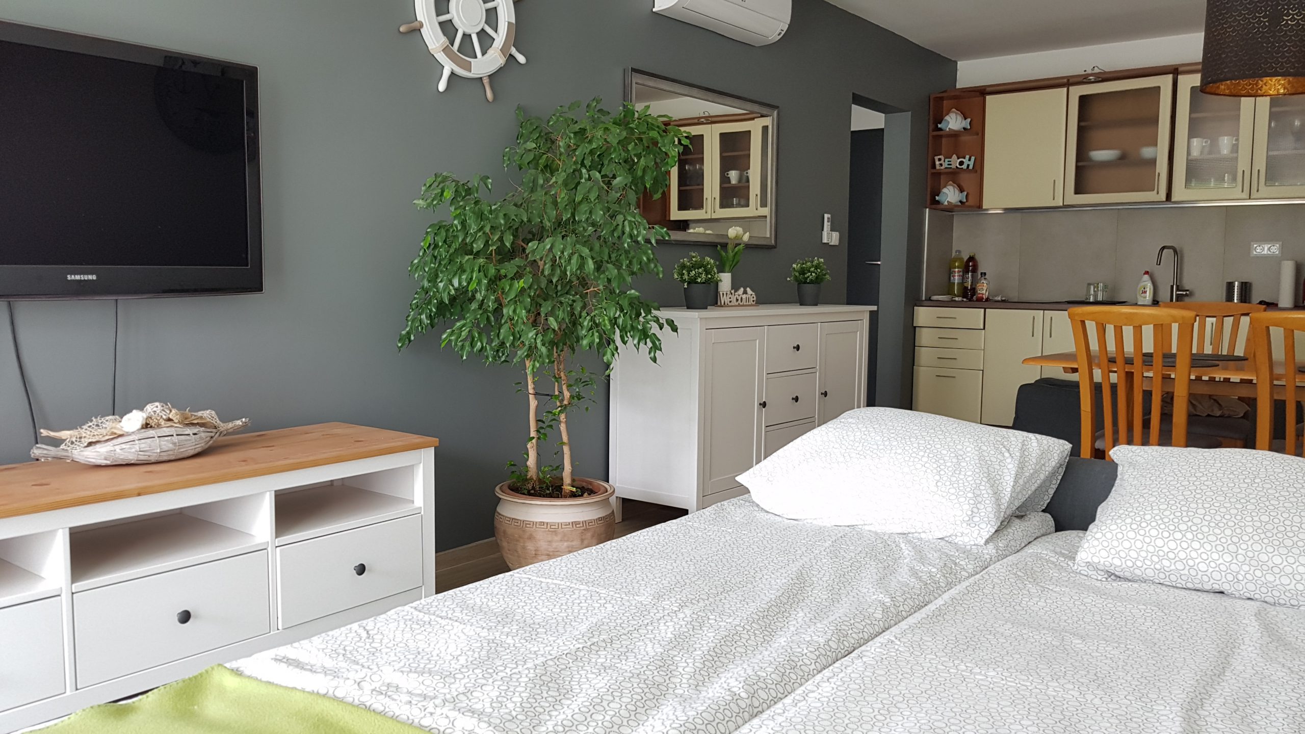 Livingroom: comfortable springy mattress sofa bed for 2 people (IKEA, 140 x 200 cm), flat screen tv, direct balokony connection with a view of Lake Balaton.